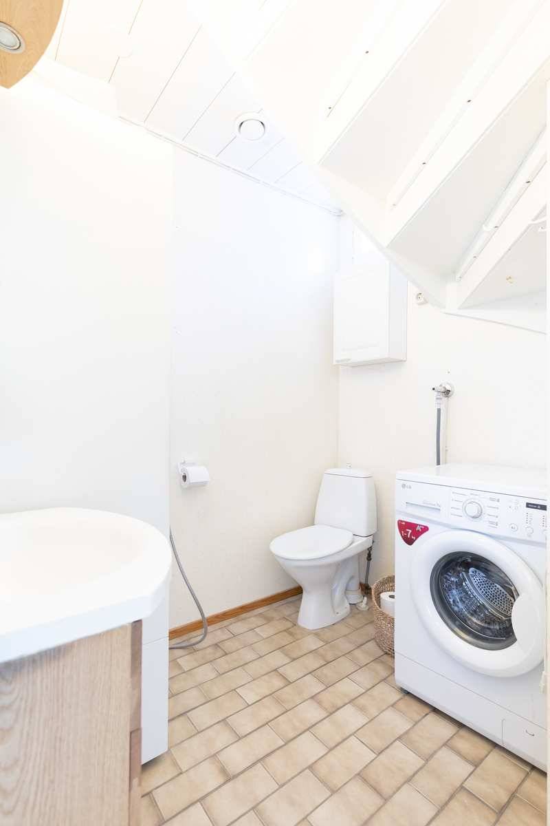 Asunnon viimeinen mutta ei suinkaan vähäisin tila on tyylikäs ja moderni kylpyhuone. Kylpyhuoneesta löytyy wc, suihku, pesuallas sekä pesukoneliitäntä. Kylpyhuoneen neutraali sisustus antaa mahdollisuuden sisustaa se oman maun mukaan.