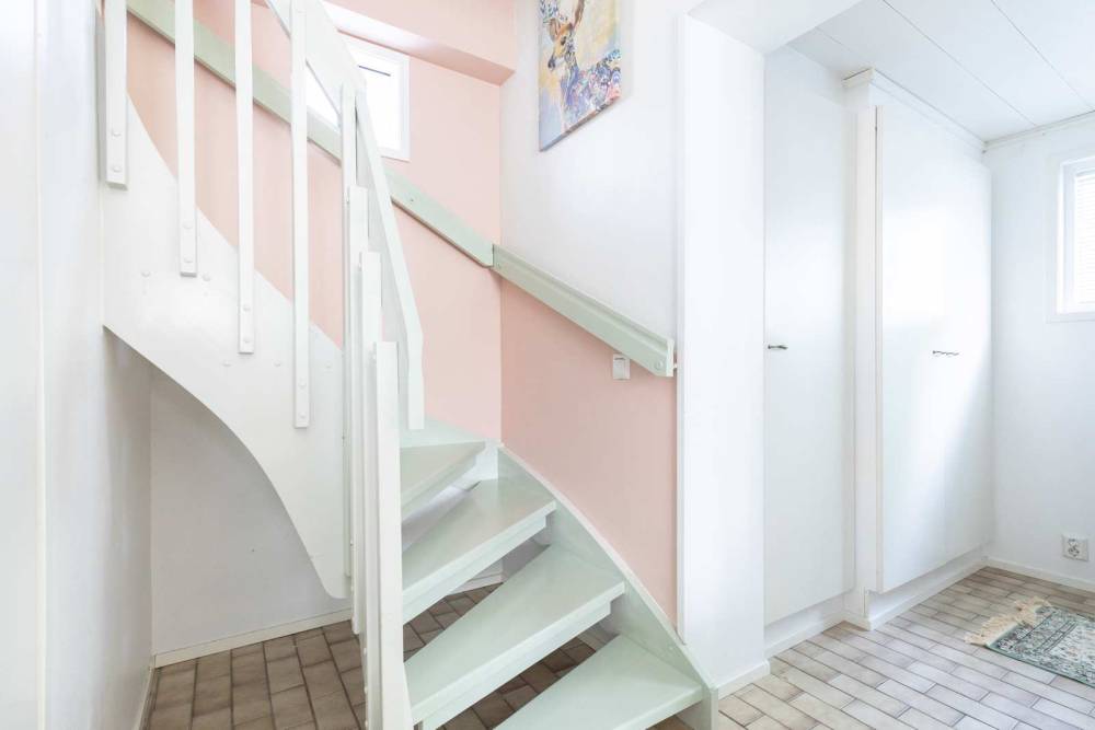 Astutaanpa sisään ja tutustutaan tiloihin tarkemmin. Käynti asuntoon tapahtuu kätevästi jo alakerrassa sijaitsevasta rappukäytävästä. Tästä pääset helposti kulkemaan hissillä tai portaita pitkin toiseen kerrokseen.